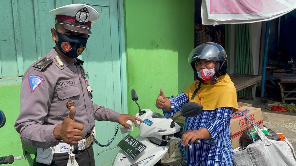 Seperti yang dilaksanakan hari ini, Anggota Unit Dikyasa Sat Lantas Polres Kediri Kota dibawah Komando Ipda Isdiyat terlihat mengadakan sosiliasai prokes dan himbauan larangan mudik , Sabtu (1/5/2021).