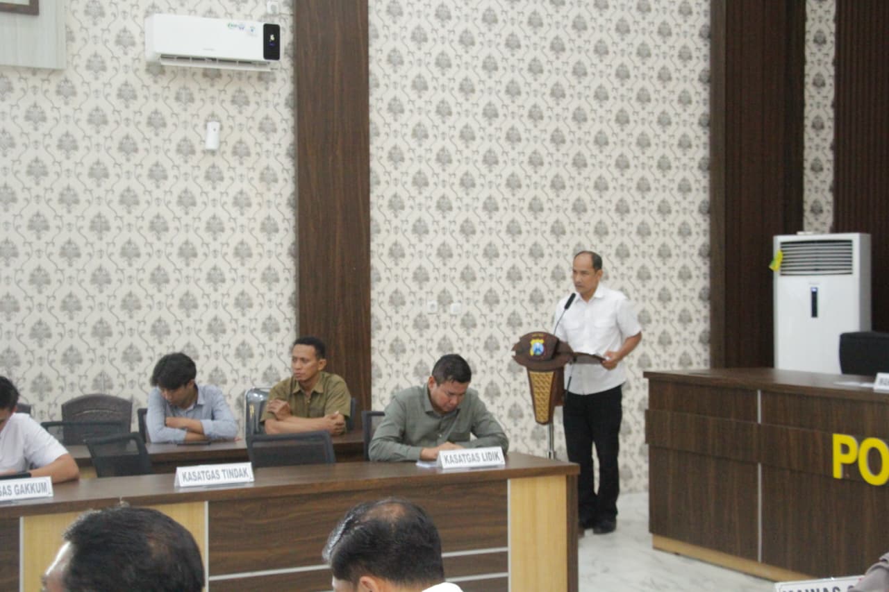 Kabag Ops Polres Kediri Kota dalam pemaparan materinya menjelaskan dasar hukum dan teknis pelaksanaan Operasi Pekat Semeru 2026. Operasi ini dijadwalkan berlangsung selama 12 hari, terhitung mulai 25 Februari 2026, dengan kekuatan personel sebanyak 80 anggota dari berbagai fungsi.
