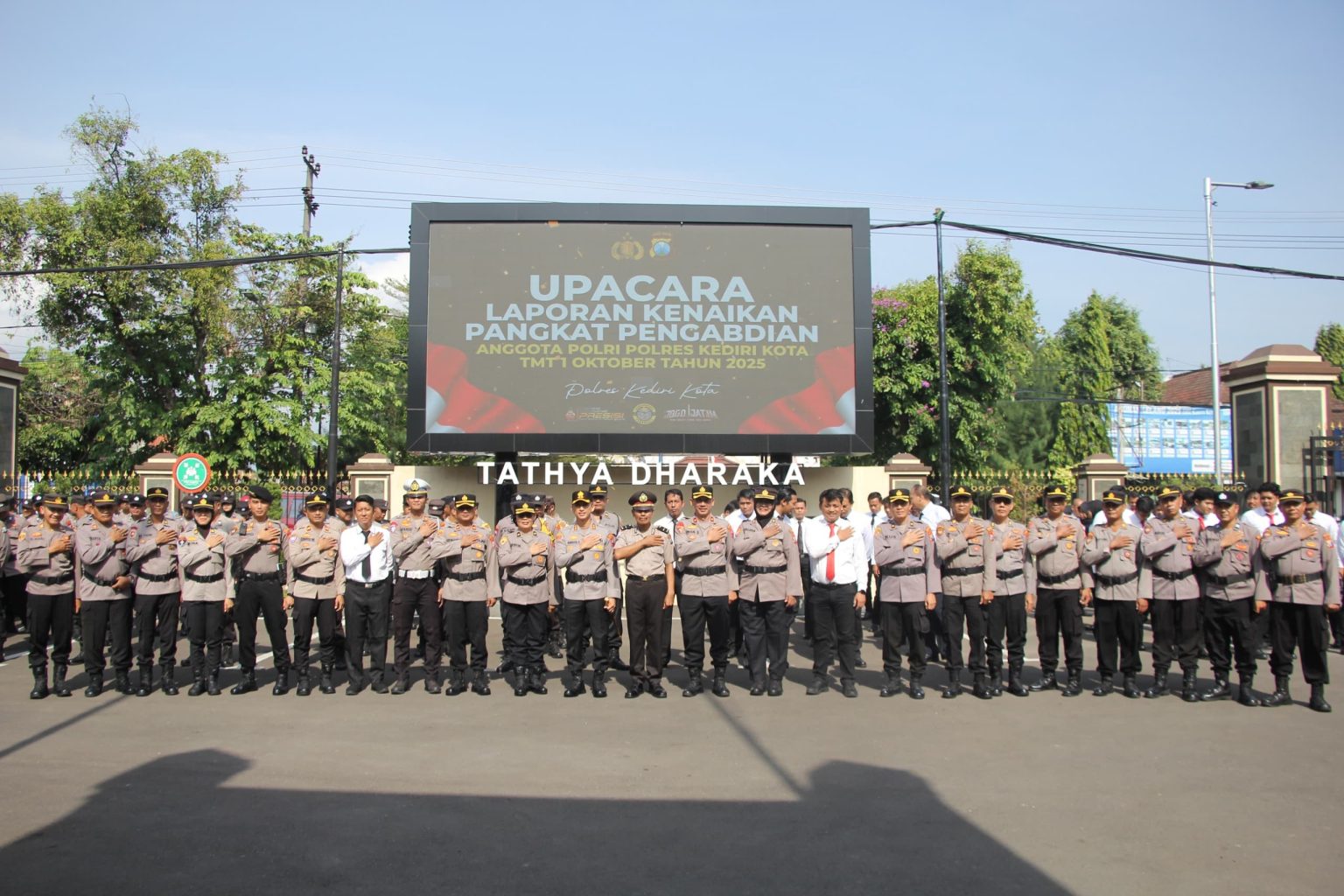 Polres Kediri Kota menggelar Upacara Kenaikan Pangkat Pengabdian bagi salah satu personelnya yang mendapat penghargaan atas dedikasi dan pengabdian selama bertugas di institusi kepolisian. Upacara dilaksanakan pada Senin (29/9/2025) pukul 08.00 WIB bertempat di Halaman Apel Polres Kediri Kota.